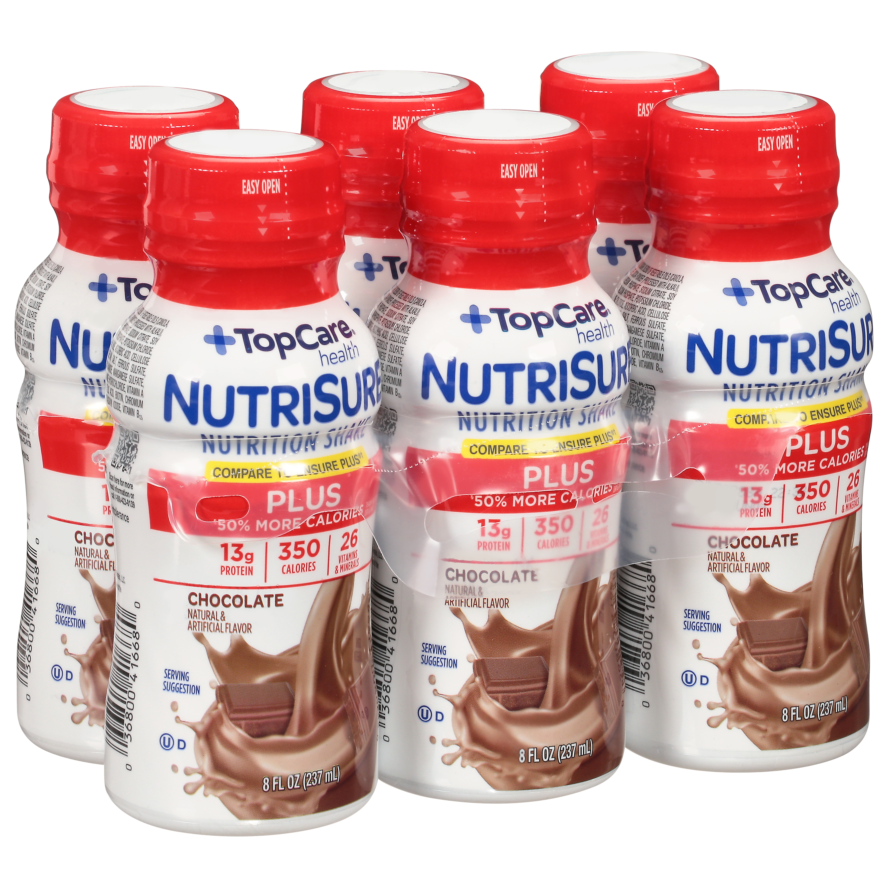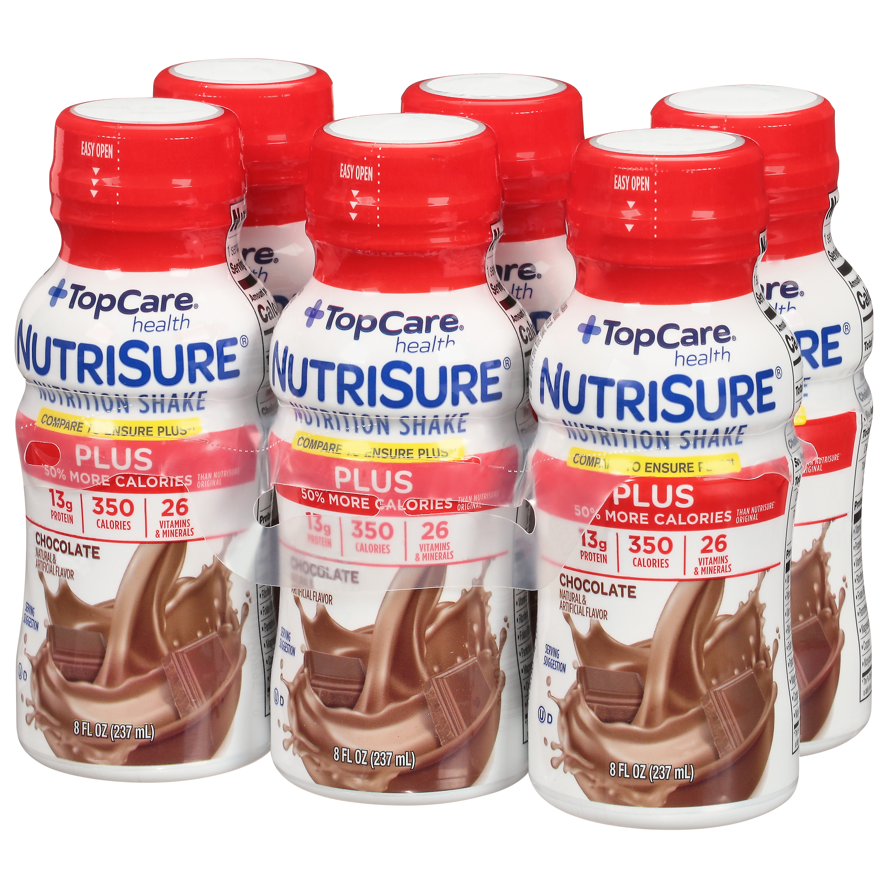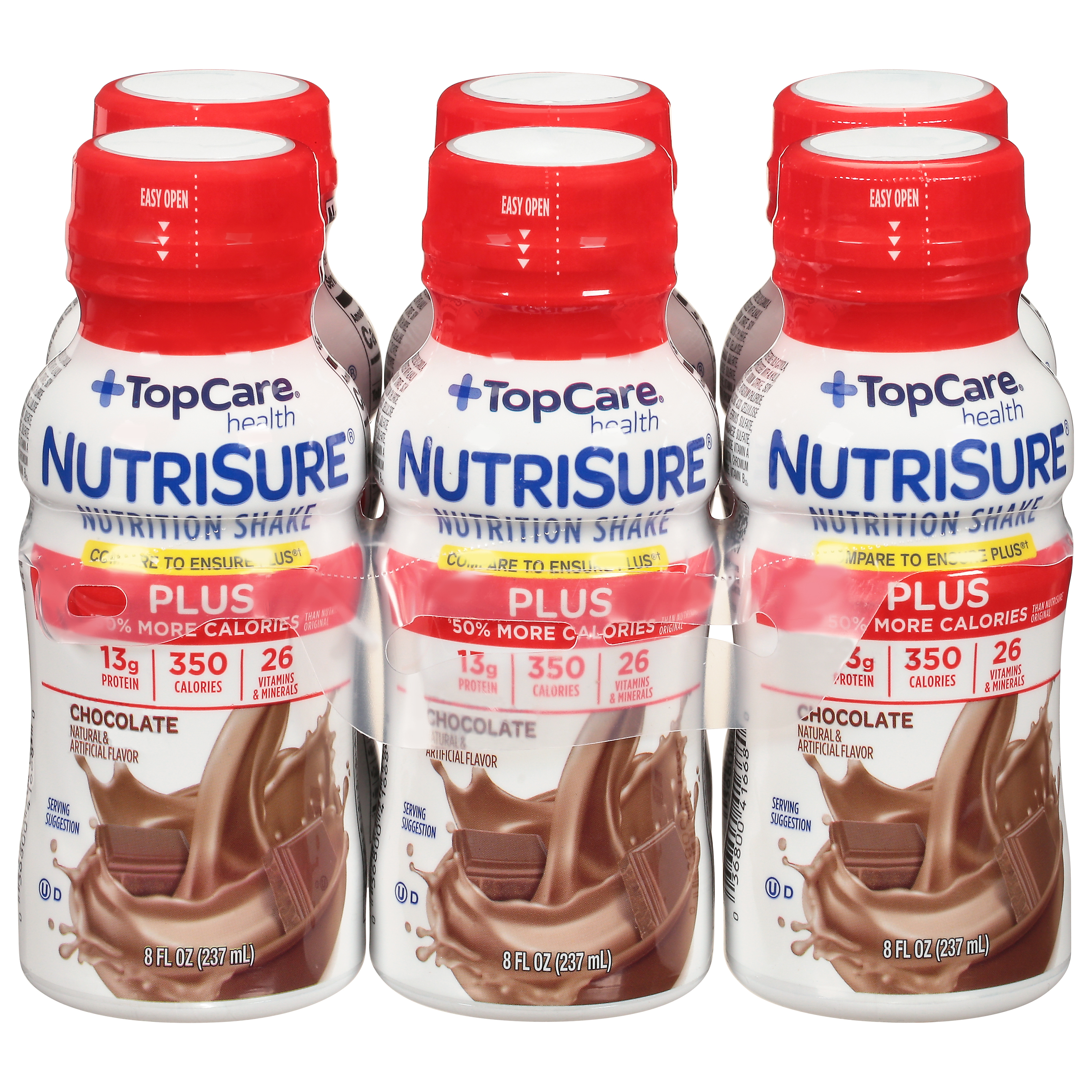 Plus 50% more calories than NutriSure Original (NutriSure Plus has 350 calories per serving. NutriSure Original has 220 calories per serving). 350 calories. 26 vitamins & minerals.