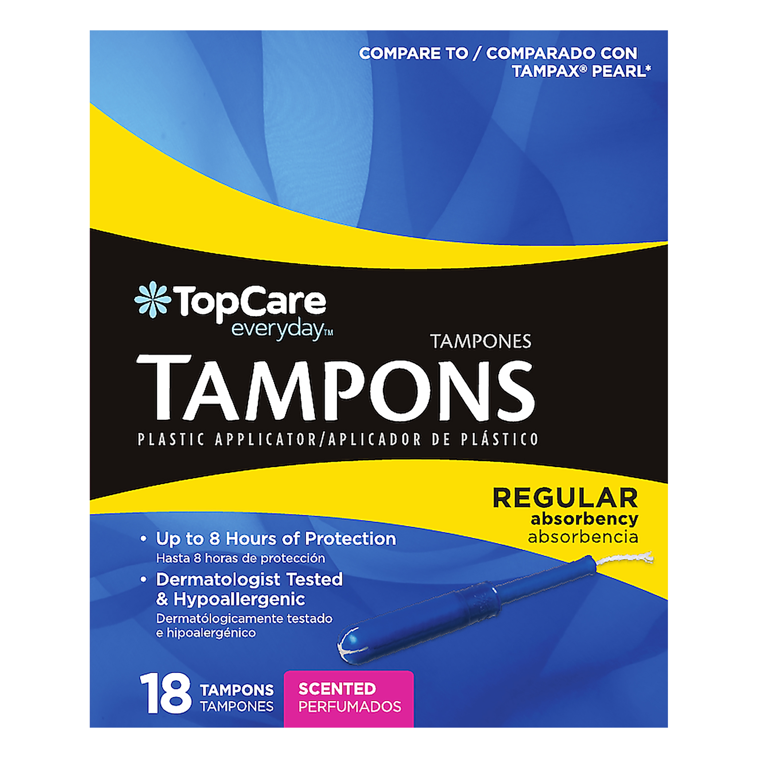 - Plastic applicator. Compare to Tampax Pearl (This product is not manufactured or distributed by Procter & Gamble Company, owner of the registered trademark Tampax Pearl Product). Regular absorbency. Up to 8 hours of protection. Dermatologist tested & hypoallergenic. Smooth, soft plastic applicator is comfortable & easy to insert. Tampon is specially designed for multidirectional expansion to fit your body & provide you with the comfort you expect. Multidirectional Expansion: Conforms to your body shape to provide unsurpassed protection. Textured Finger Grip: Textured finger grip design for ultimate control while inserting your tampon. Secure Withdrawal Cord: Withdrawal cord is sewn the full length of absorbent pad. Individually Wrapped: Individually wrapped to keep tampon clean and protected. Tampon Absorbency Range: Tampon Absorbency Range: Tampon absorbency terms & ranges are regulated by the FDA. All tampon manufacturers are required to use the same absorbency ranges & terms based on standard laboratory tests. Use this chart to compare the absorbency of these tampons to other brands. Absorbency: Light; Absorbency Range: <6 g. Absorbency: Regular; Absorbency Range: 6-9 g. Absorbency: Super; Absorbency Range: 9-12 g. Absorbency: Super Plus; Absorbency Range: 12-15 g.