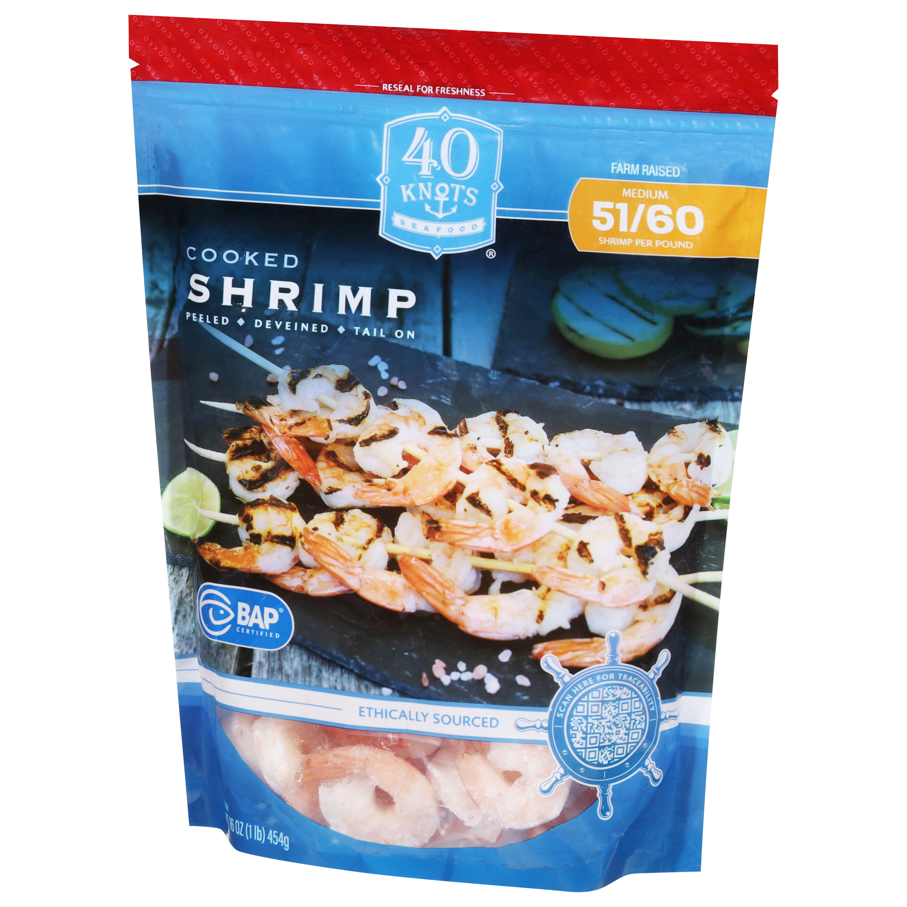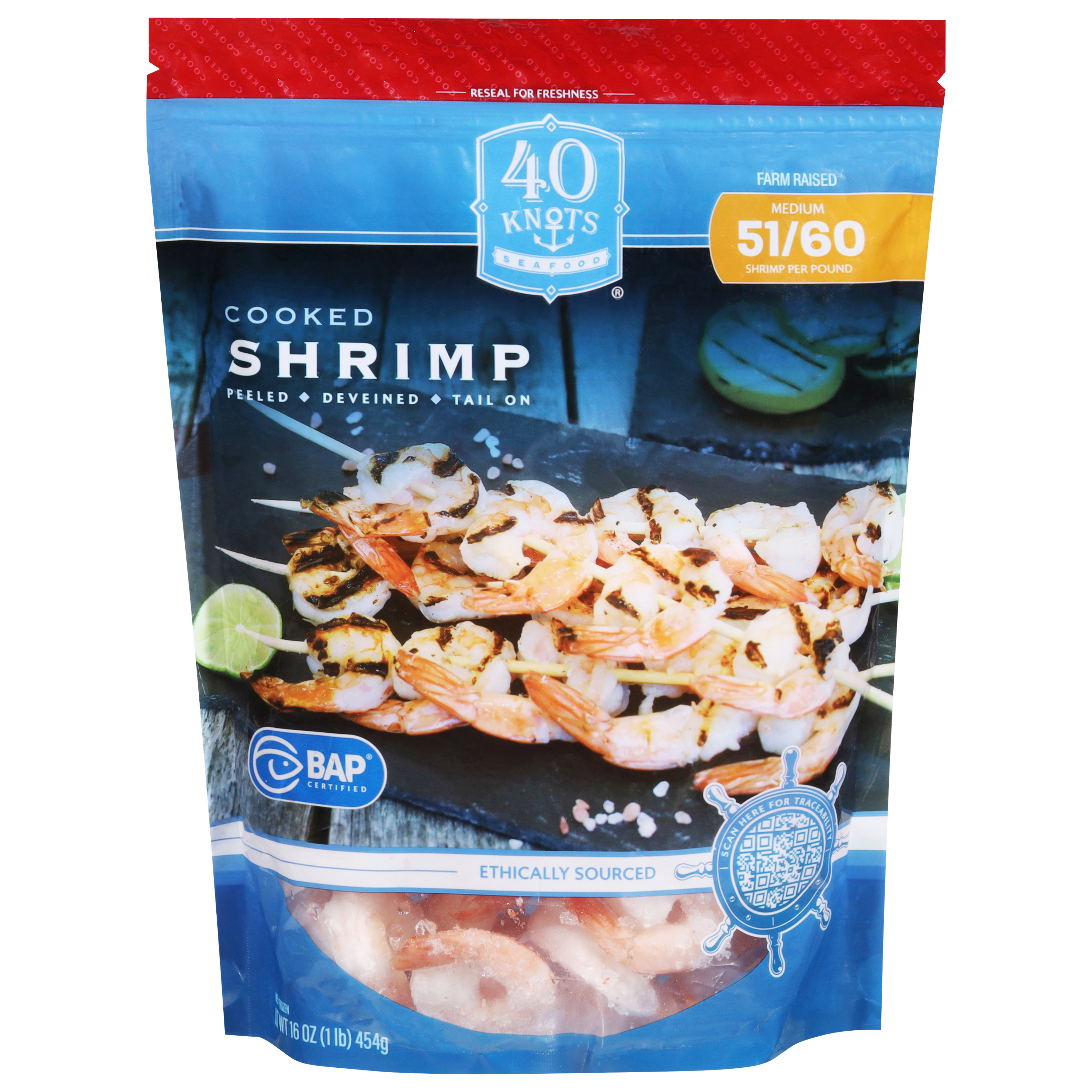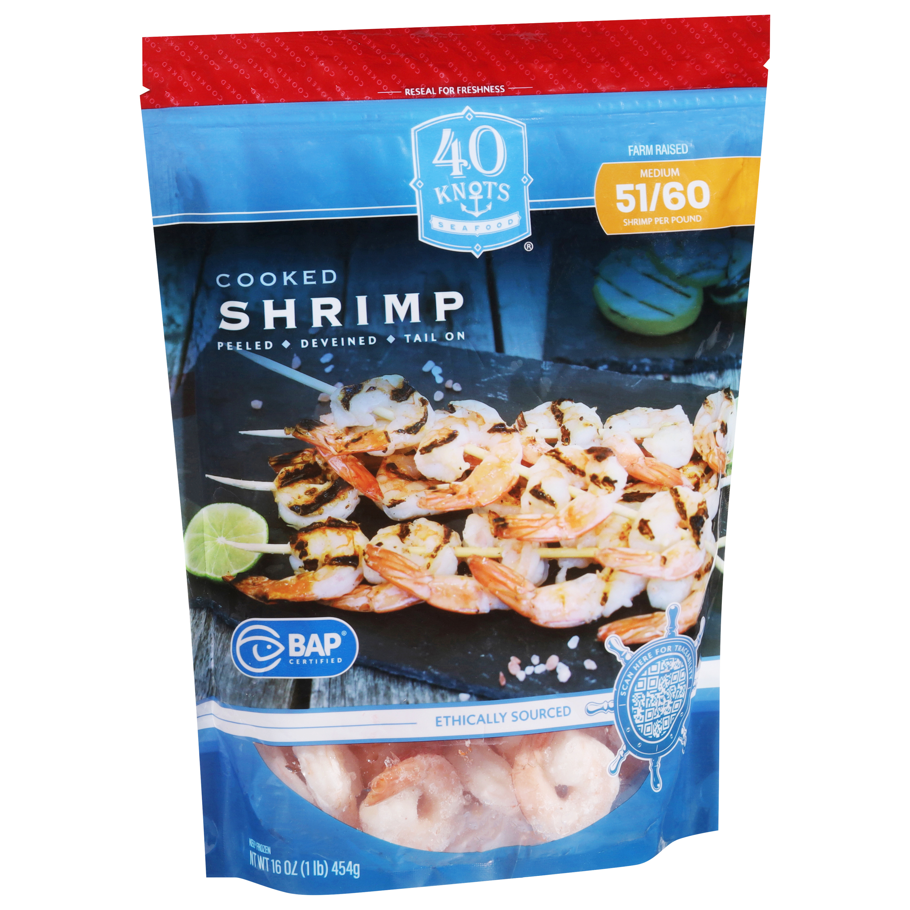 Cooked shrimp are a great, easy way to save time. Use cooked shrimp for your next shrimp cocktail or add them to your next pasta or stir-fry dish. Size and thickness of portions will vary, adjust cooking instructions accordingly.